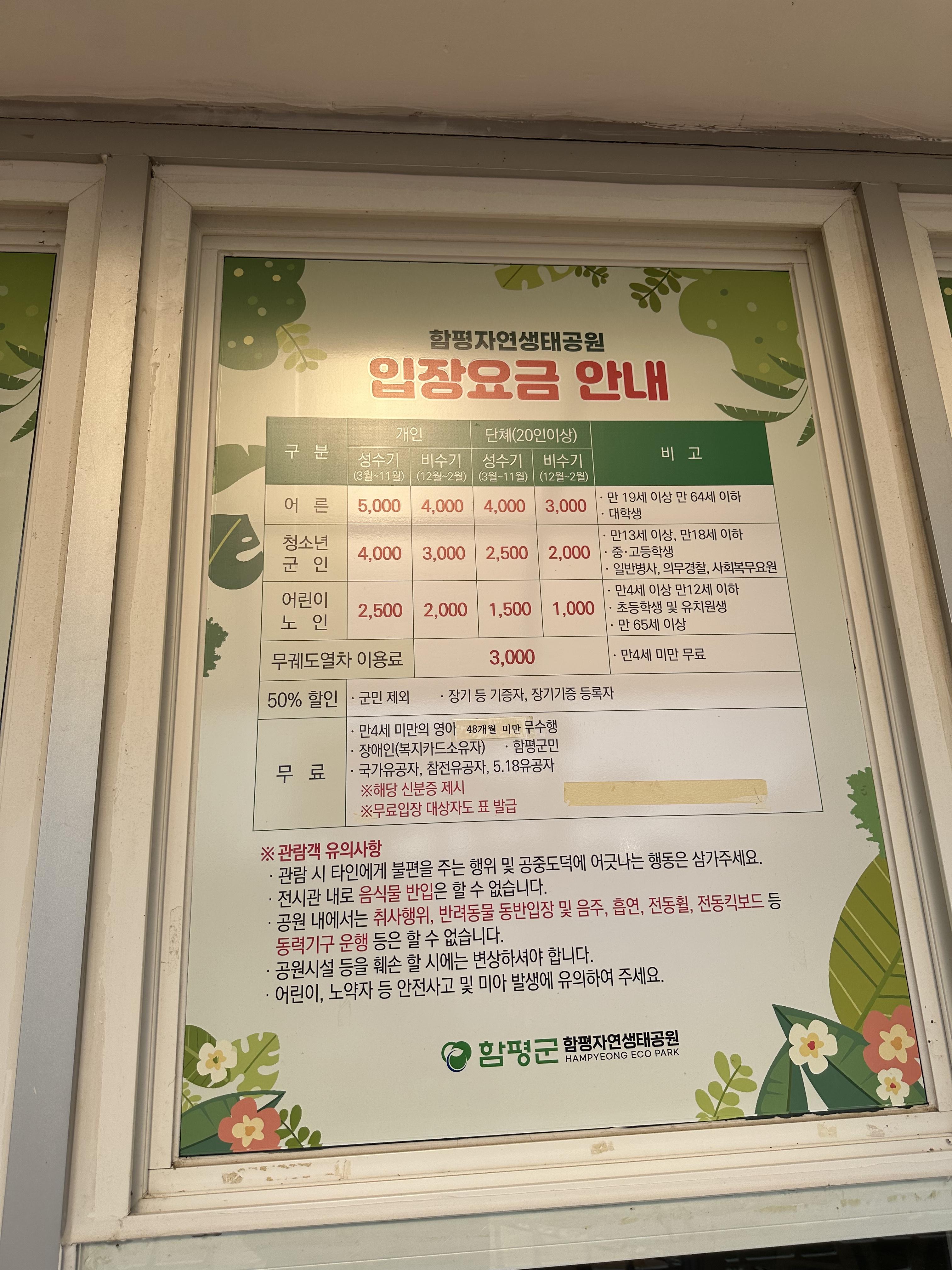 - 입장료가 저렴: 성인은 몇 천 원밖에 안 하고, 4세 미만은 무료예요! 그리고 입장권 하나로 양서파충류전시관과 자연생태공원까지 입장이 가능하니 가성비가 좋아요! (비수기 성수기 입장료 차이와 관람 시간 차이가 있으니 꼭 확인하시고 방문하세요!)