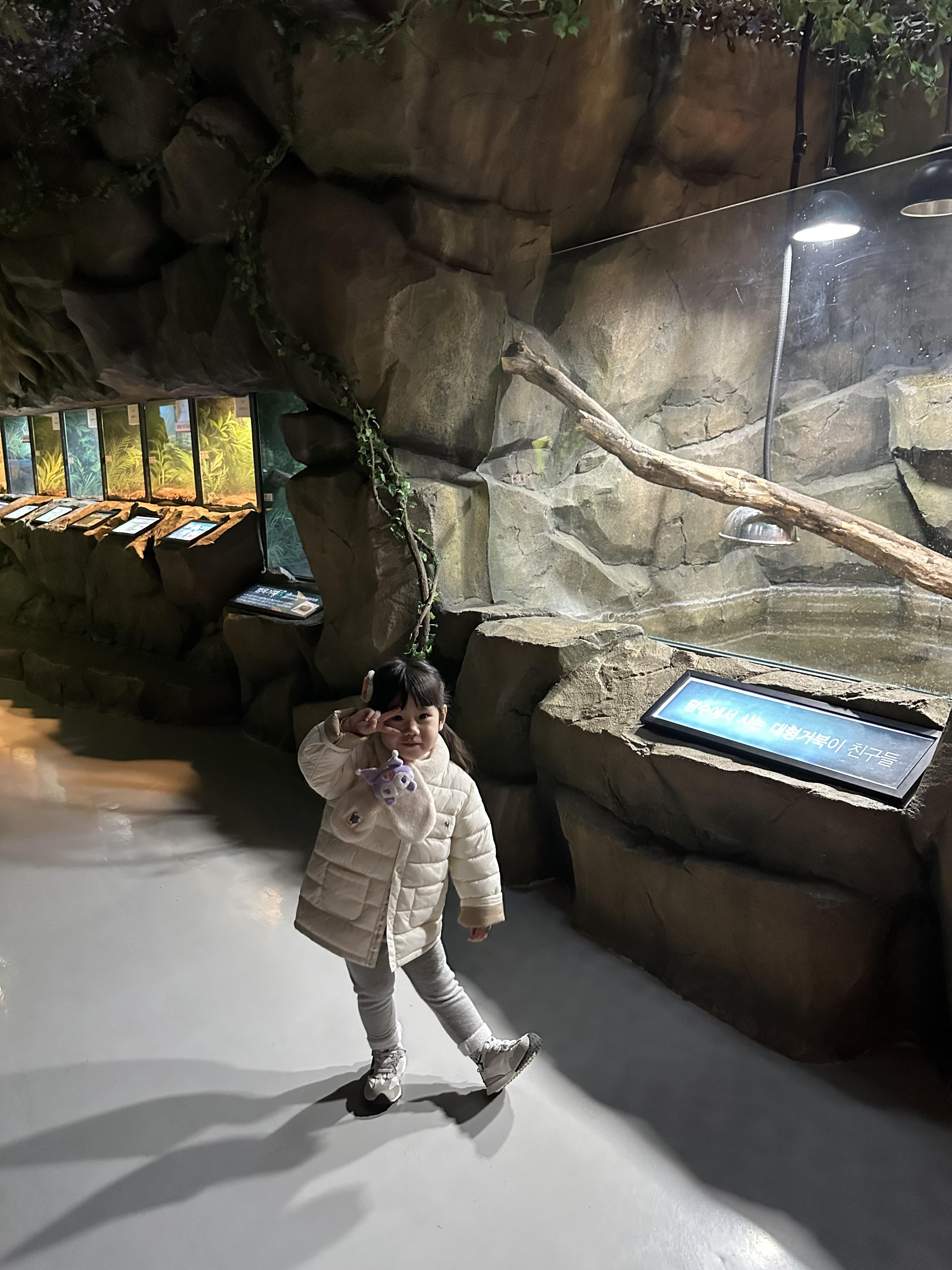 - 2층: 정글이나 사막처럼 꾸며진 공간에 뱀, 이구아나 같은 동물들이 있어요. 특히 뱀을 가까이서 본 태리가 처음엔 살짝 무서워하더니 나중엔 엄청 흥미로워하더라고요~